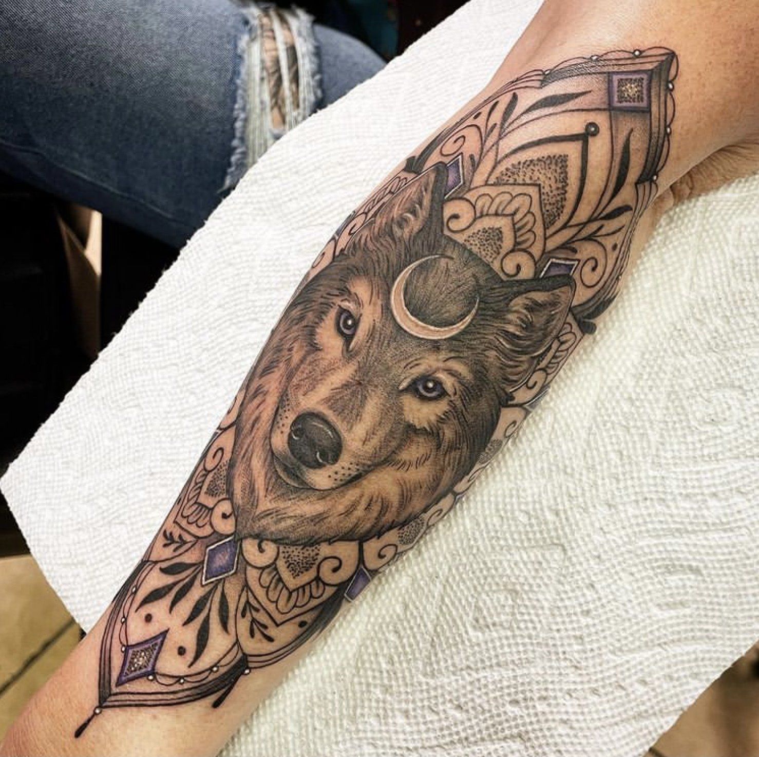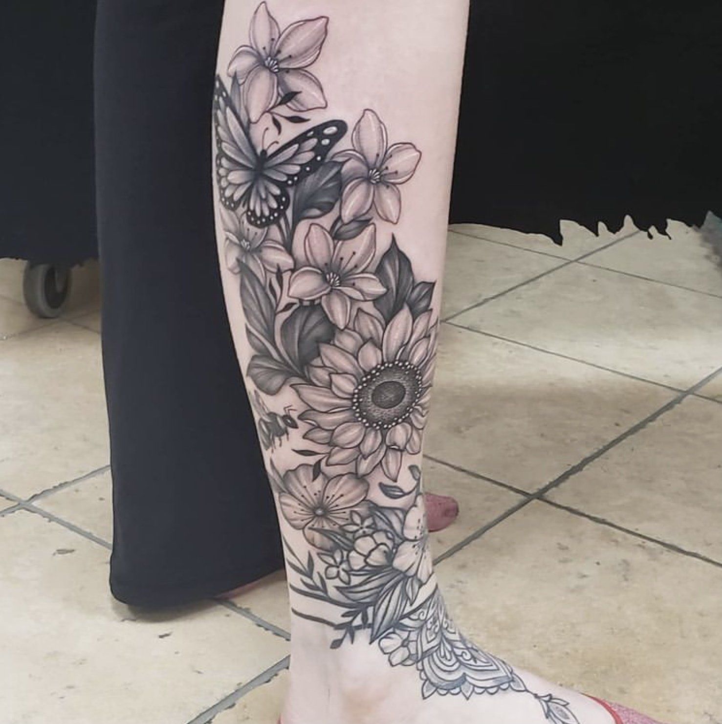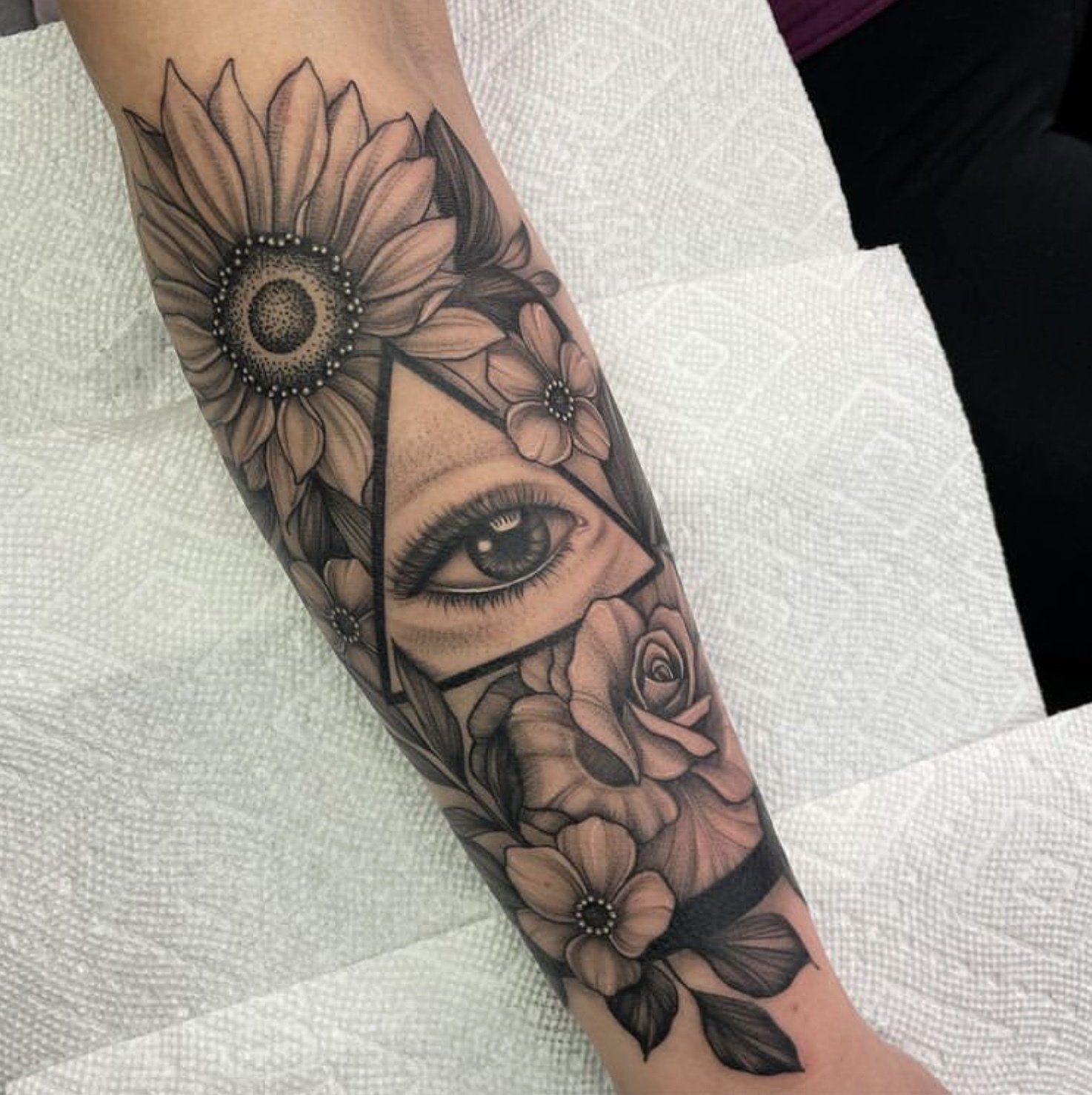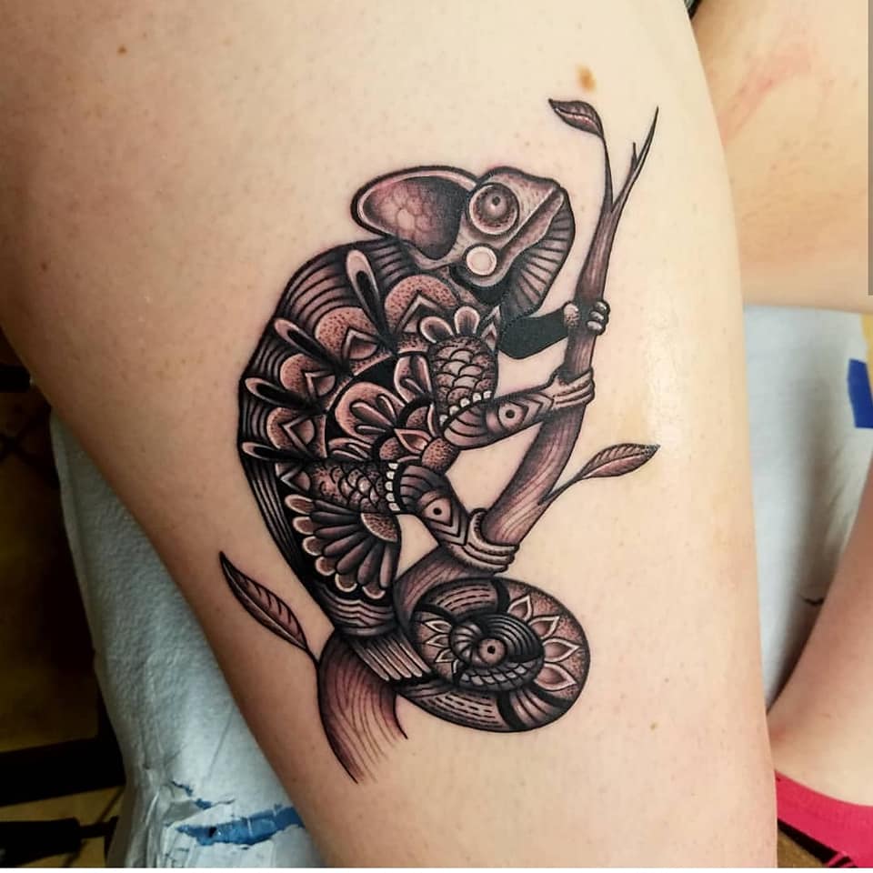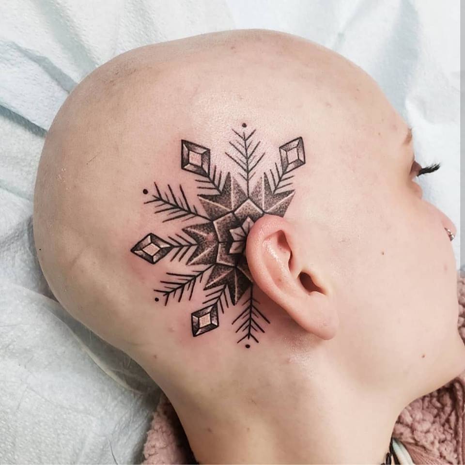 She has been tattooing since 2016 and enjoys black and grey, geometric, nature work and scar coverups.